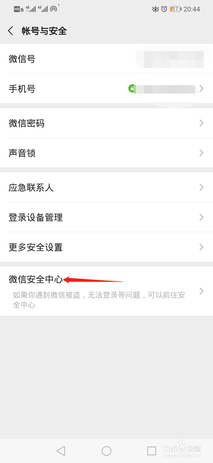 4、点击微信安全中心
