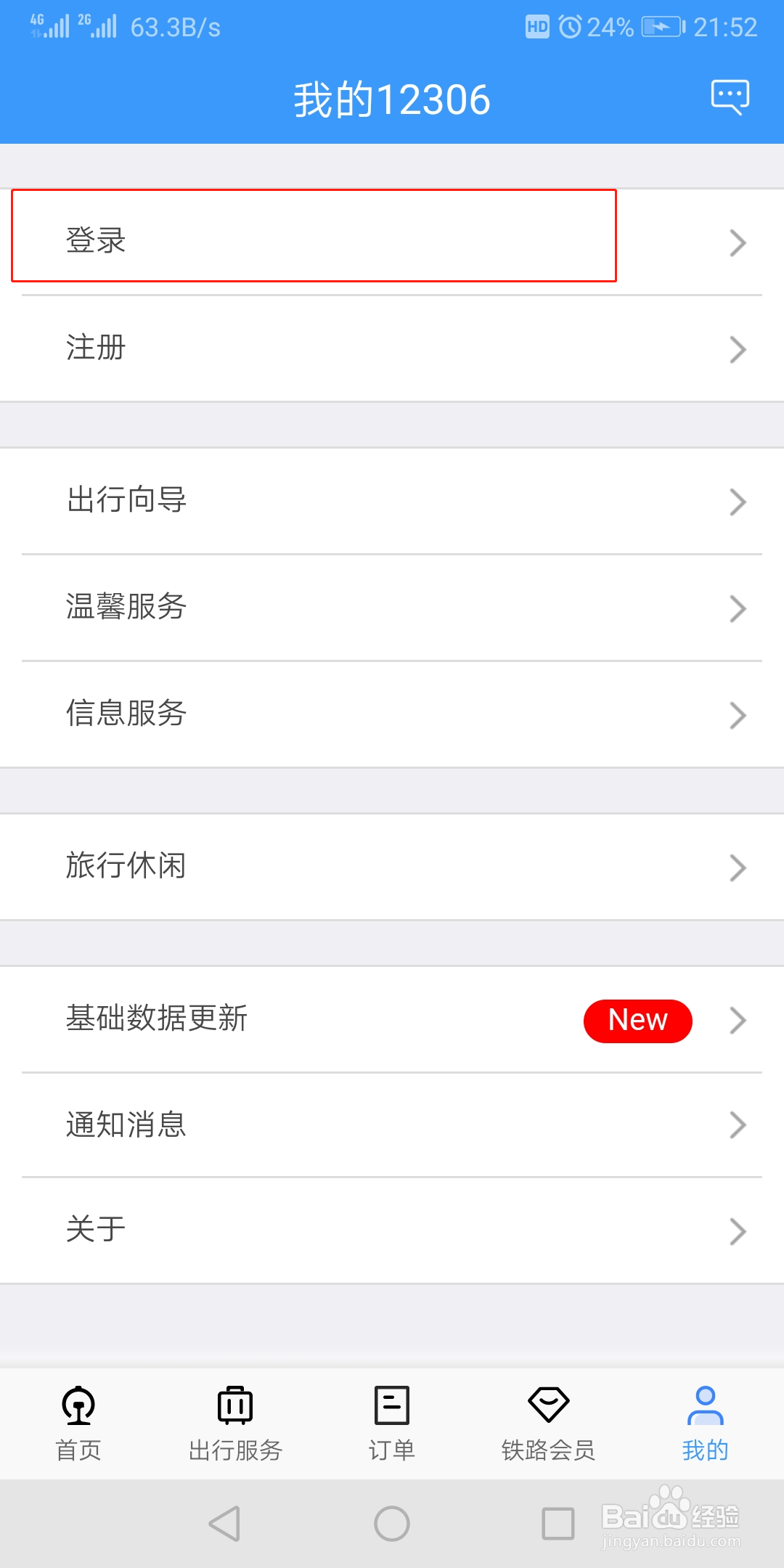 1、将铁路12306安装到你的手机上,没有安装的可以在手机上的应用商场找到并安装好,安装好后如图