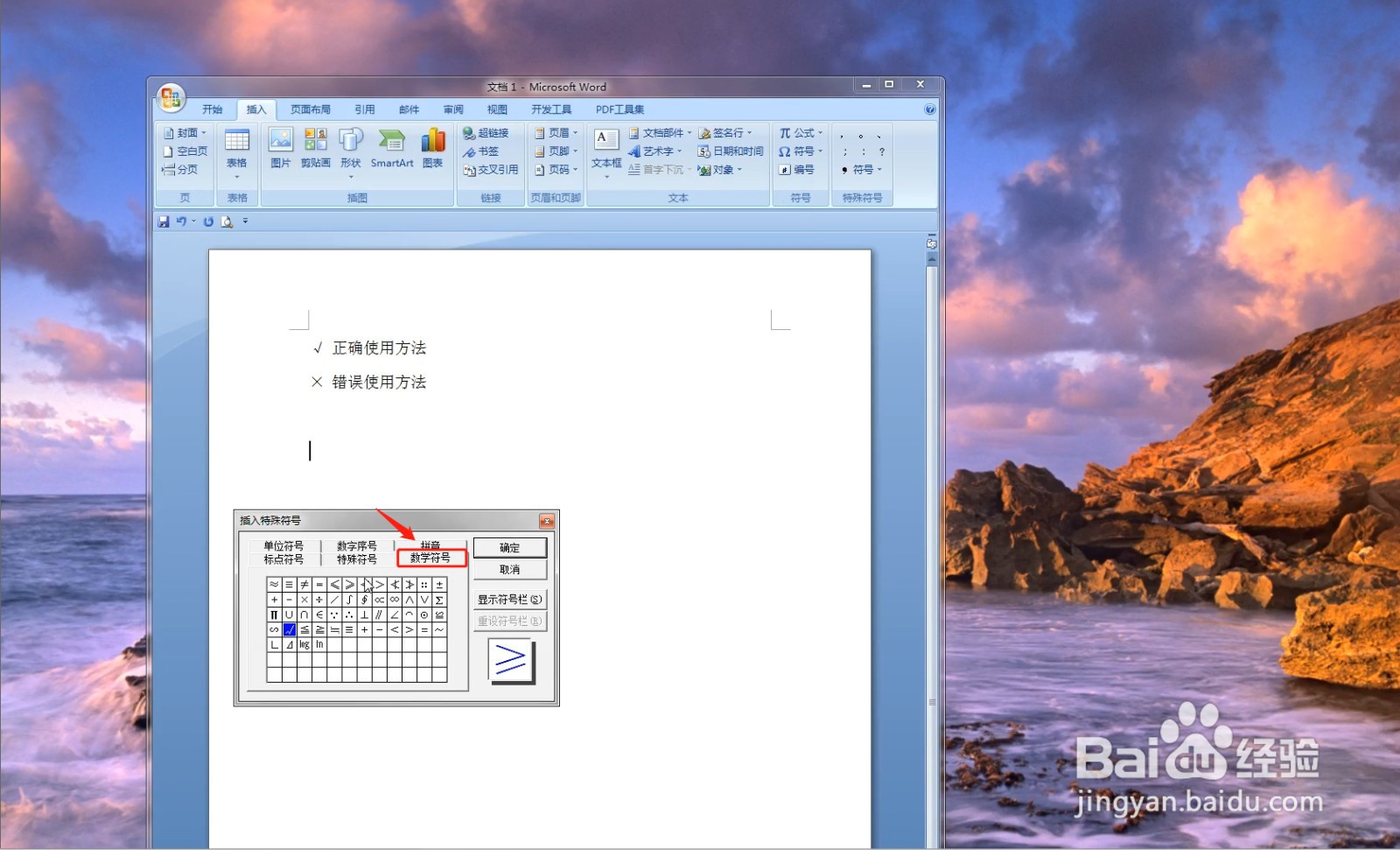 4、在符号列表中,找到需要的符号对“√”或者错“×”,单击即可