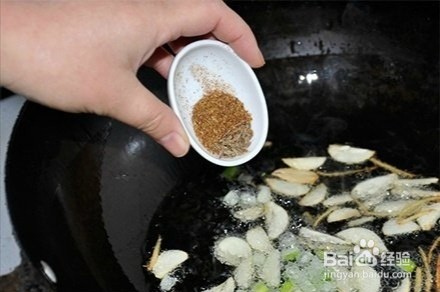 3、加入花椒和孜然。