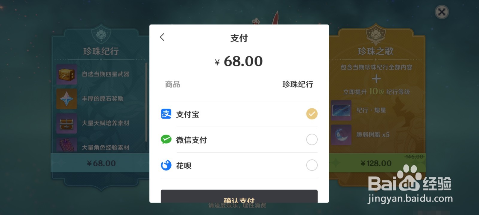 5、所以这时候可以选择一个支付方式去解锁【珍珠纪行】,再把等级提升上去。