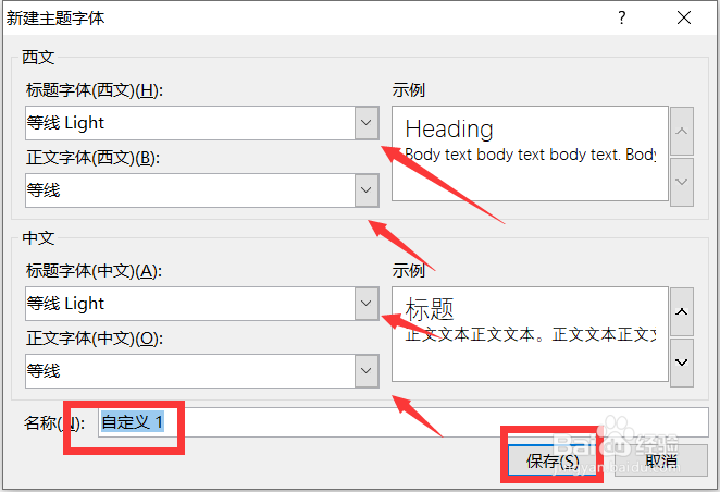 5、也可以点击自定义字体,设置好记得为它取一个名称