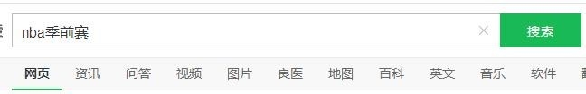 1、打开电脑上的浏览器,在搜索框输入季前赛等关键字进行搜索,点击选择下方的链接。