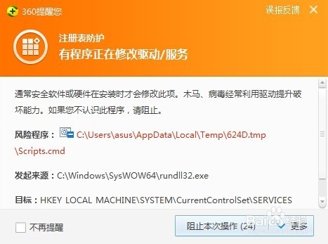 8、现在各种杀毒软件提醒,危险,阻止本次操作等等,无视他们,直接选择“允许程序的所有操作”,或者开始时先把各种杀毒软件关闭。