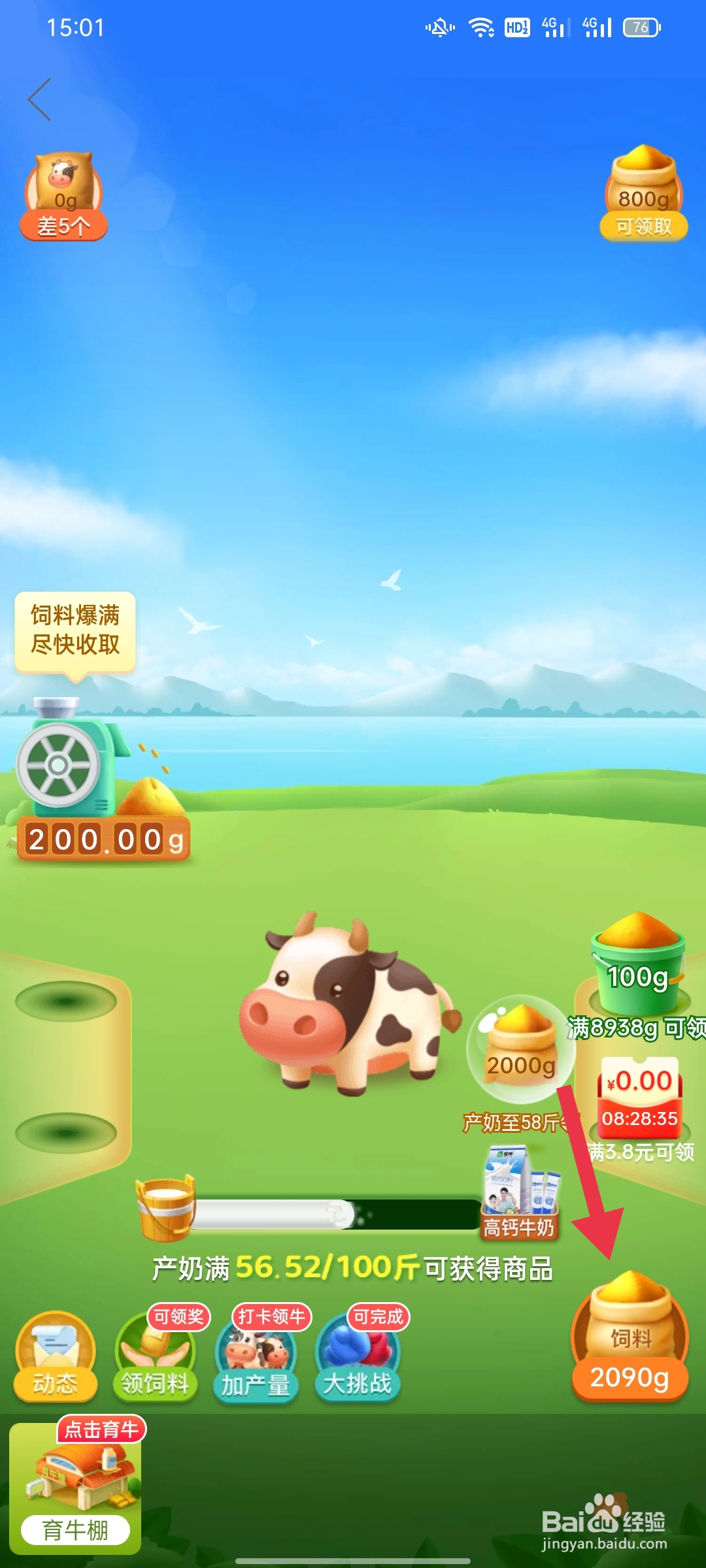进入多多牧场点击饲料,即可在拼多多喂牛。