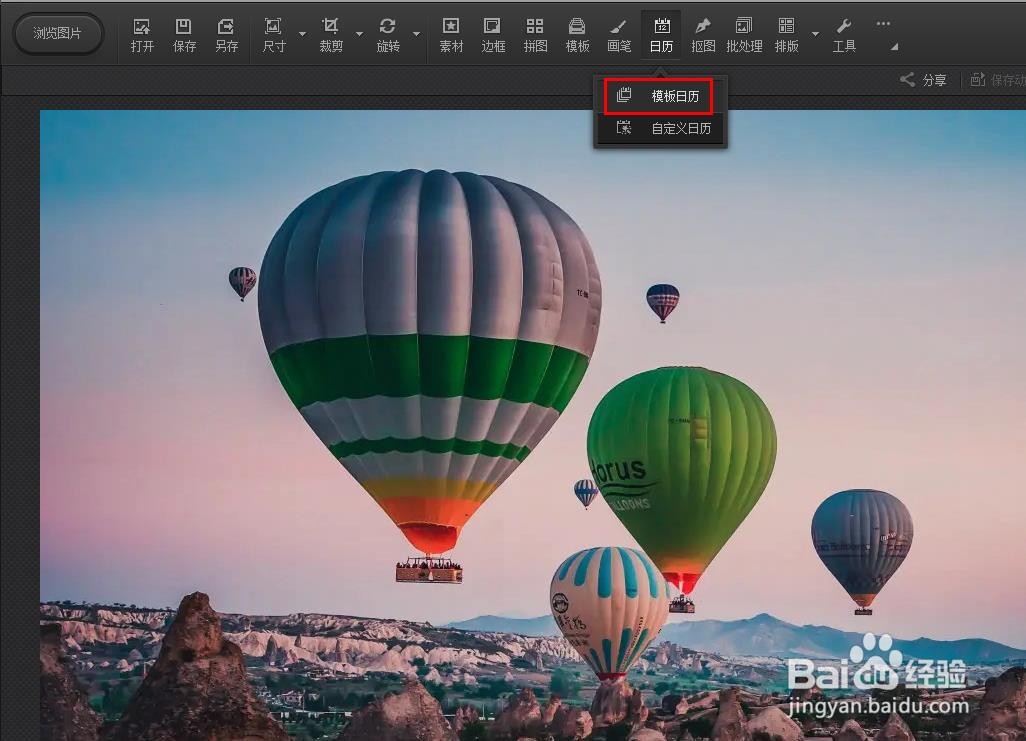 2、第二步:在上方菜单栏“日历”中,选择“模板日历”。