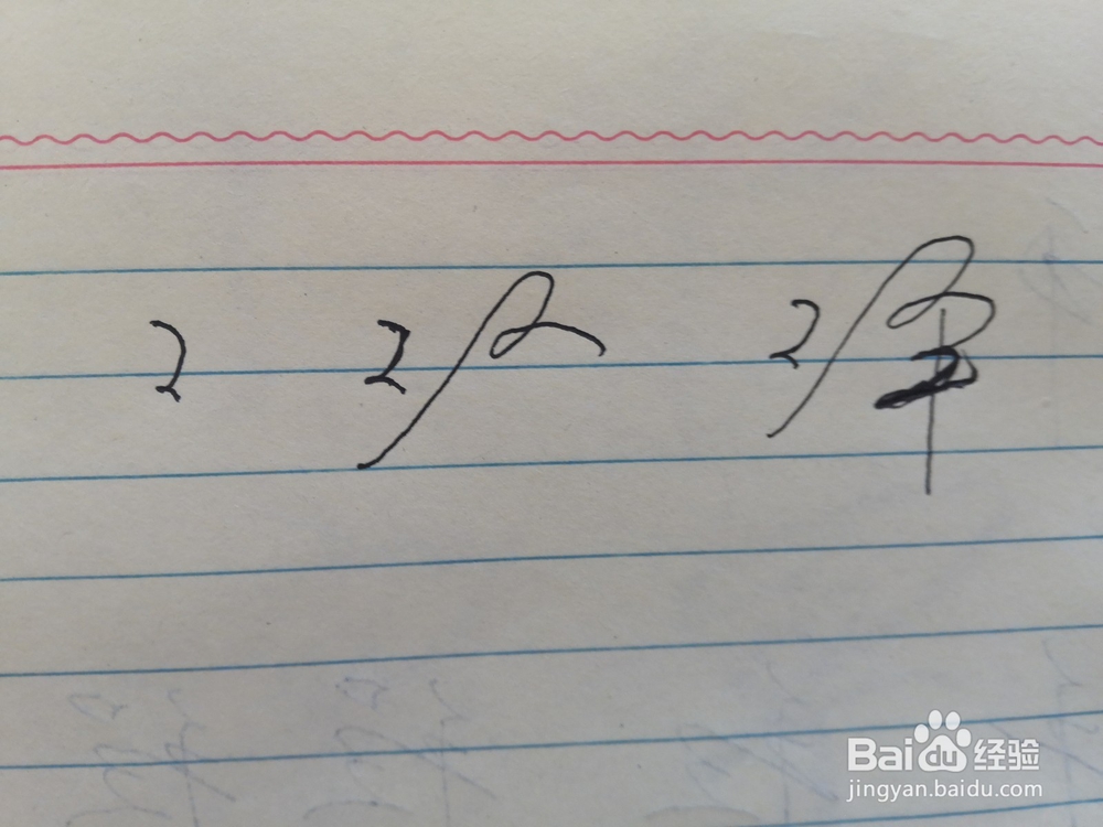 3、连笔上头,注意这一笔要饱满,而不是扁平,即多占一定的竖向空间,更加偏向于2而不是z。