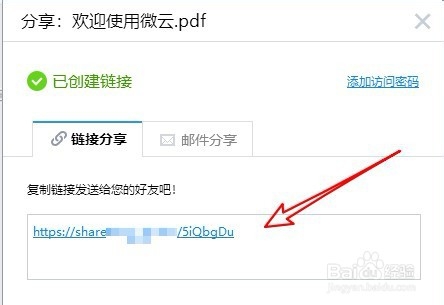 5、在打开的窗口中就可以看到分享文件的链接。