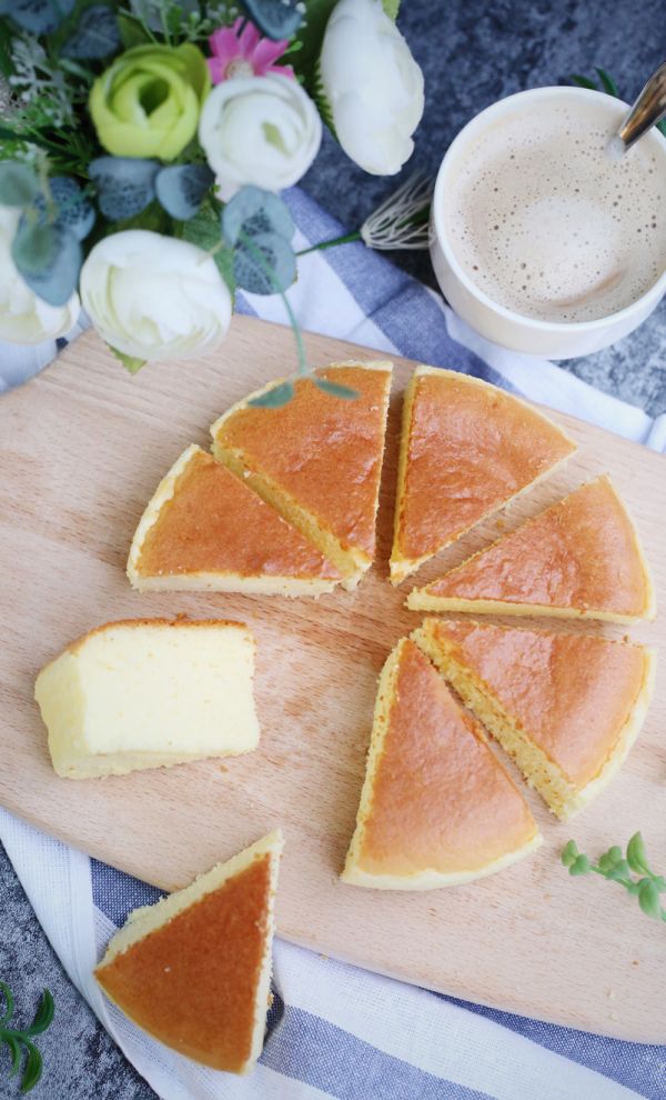 10、10.将乳酪芝士糊倒入模具中,在桌面上轻震几下,震出气泡。