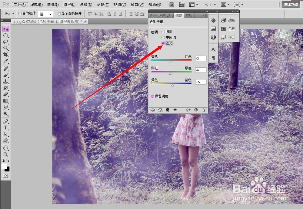 7、下面新建色彩平衡1进行调整。对阴影和高光进行调整。