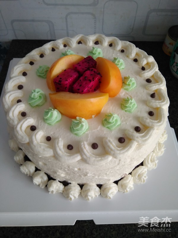 11、蛋糕上面,用中号裱花嘴沿外圈走一趟花边。
