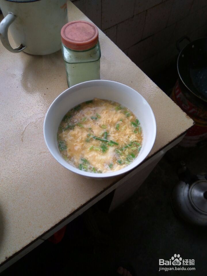 6、将煮好的葱花鸡蛋汤倒到碗中,一道美味简单葱花鸡蛋汤就完成了。