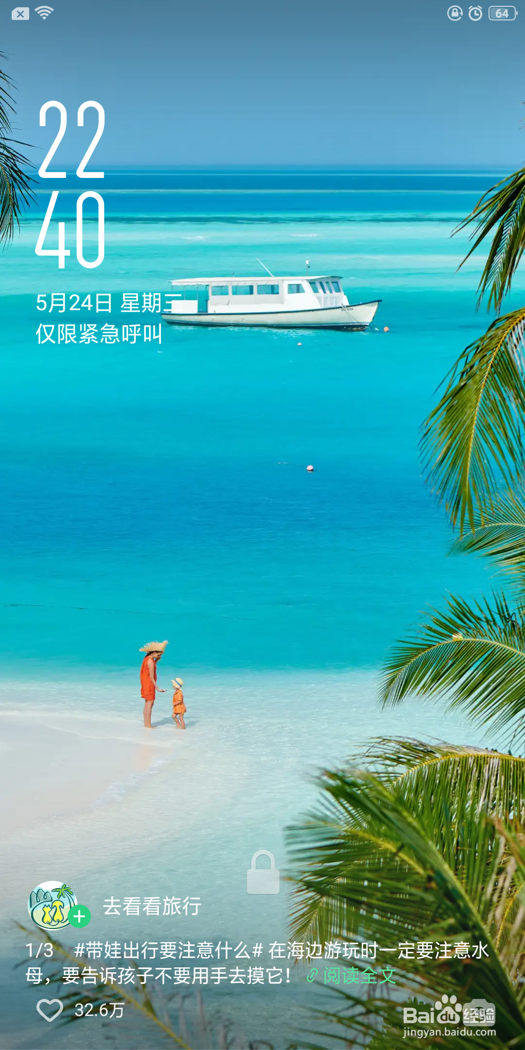 1、OPPO手机亮屏后,在屏保壁纸中左划并下拉后进入下拉乐划空间;