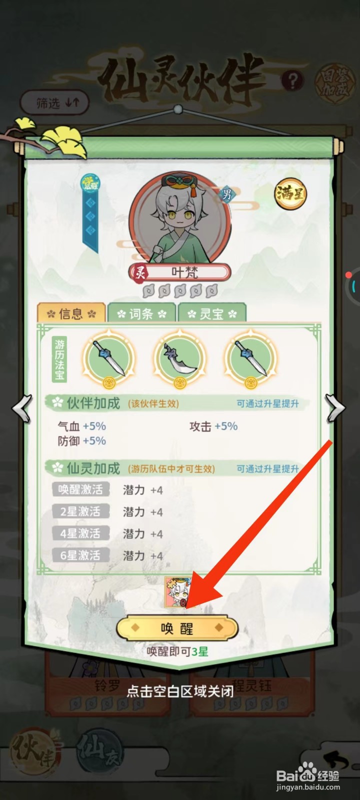 3、第三步:进入张小梵界面,点击【唤醒】即可