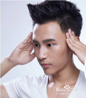 6、用双手指腹占取少许发泥,顺着两侧的发丝走向向下,让两侧发丝紧贴头皮起到定型效果。