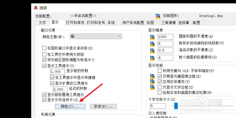 2、在选项窗口中,在显示项目栏中,找到颜色选项。
