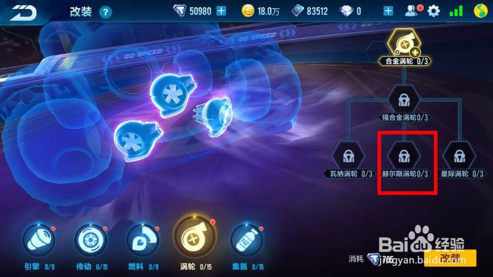 5、涡轮:涡轮是用来加小喷的动力的,小编在这里一般会选择中间的“赫尔斯涡轮”。