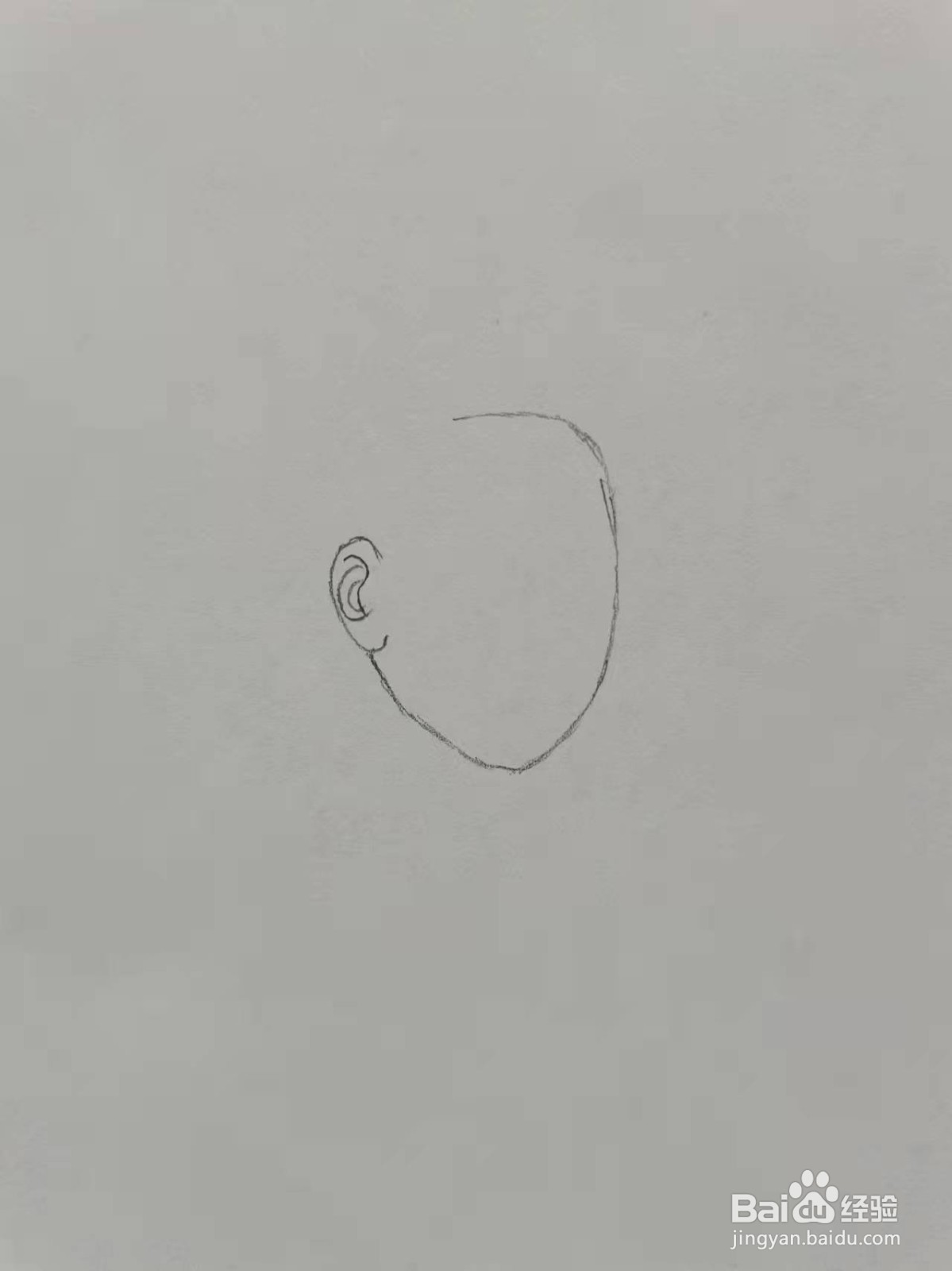 2、然后,我们画卡通科学家的眼睛和嘴巴。