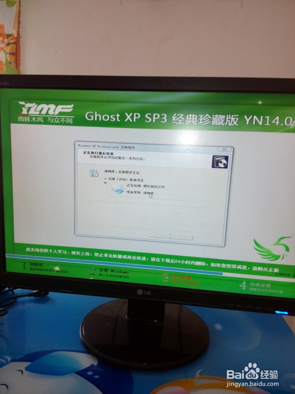 6、重启之后,这时已经不需要U盘了,电脑会自己一步一步地安装好系统所需要的文件了,如下图