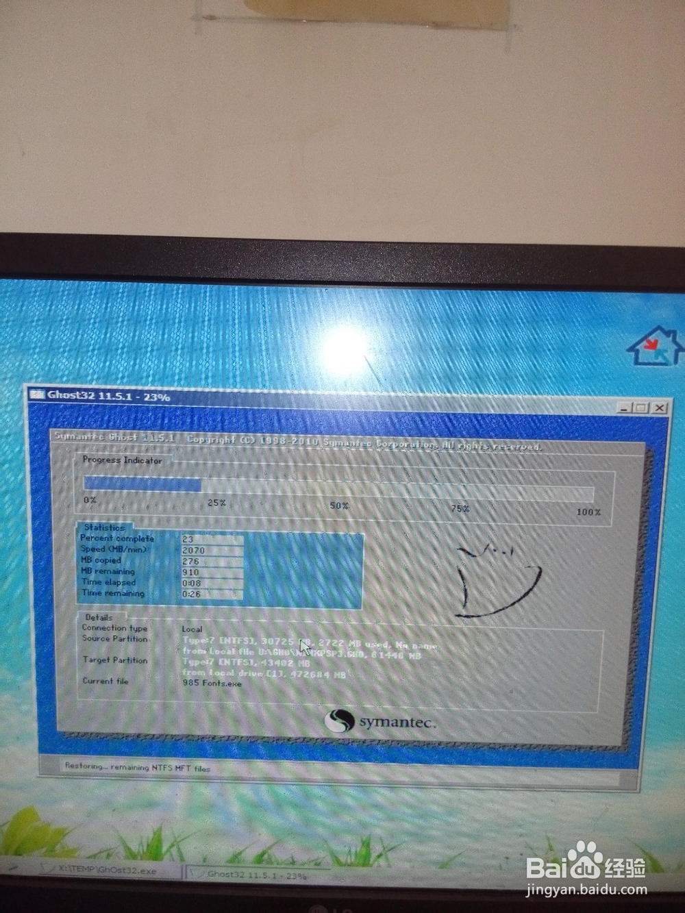 5、GHOST完之后,又会出现以下重启对话框,点选是