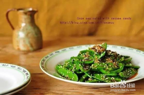 常用的生抽、麻油给荷兰豆提味,再撒上一把芝麻,爽脆可口。给喝粥增加了另一种口感。