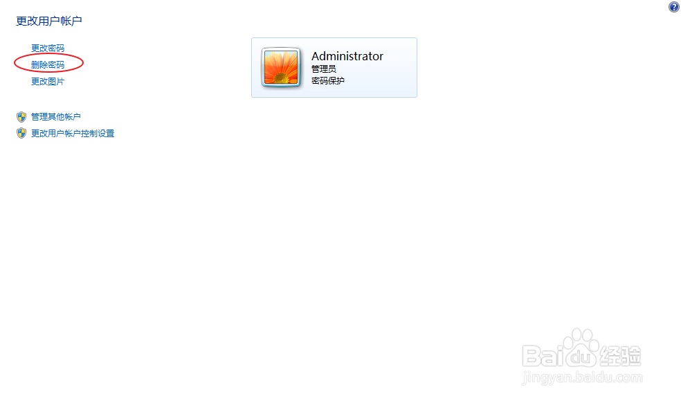 6、要去删除密码,点击删除密码。