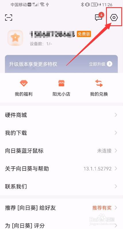1、打开向日葵远程控制APP,进入我的界面,选择“设置”。如图: