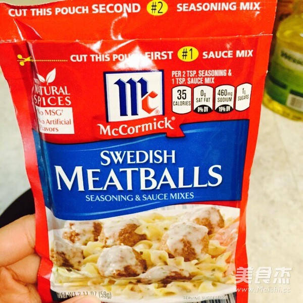 1、这牌子的肉丸调味包是2合1的包装方式,所以一袋中有两小袋。把它们分别倒入两个较大的容器中