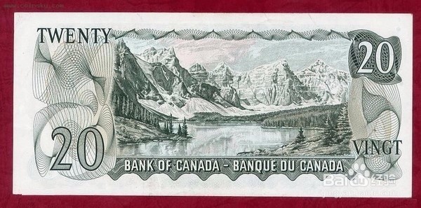 梦莲湖,一座落基山脉上的冰积湖,曾被加拿大选为加拿大20加元纸币1969年到1979年版本的背面图案。