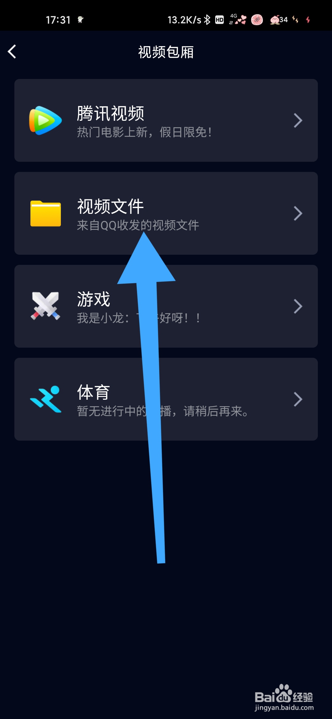 4、最后,找到【视频文件】,点击进入,选择要播放的视频文件即可播放啦。