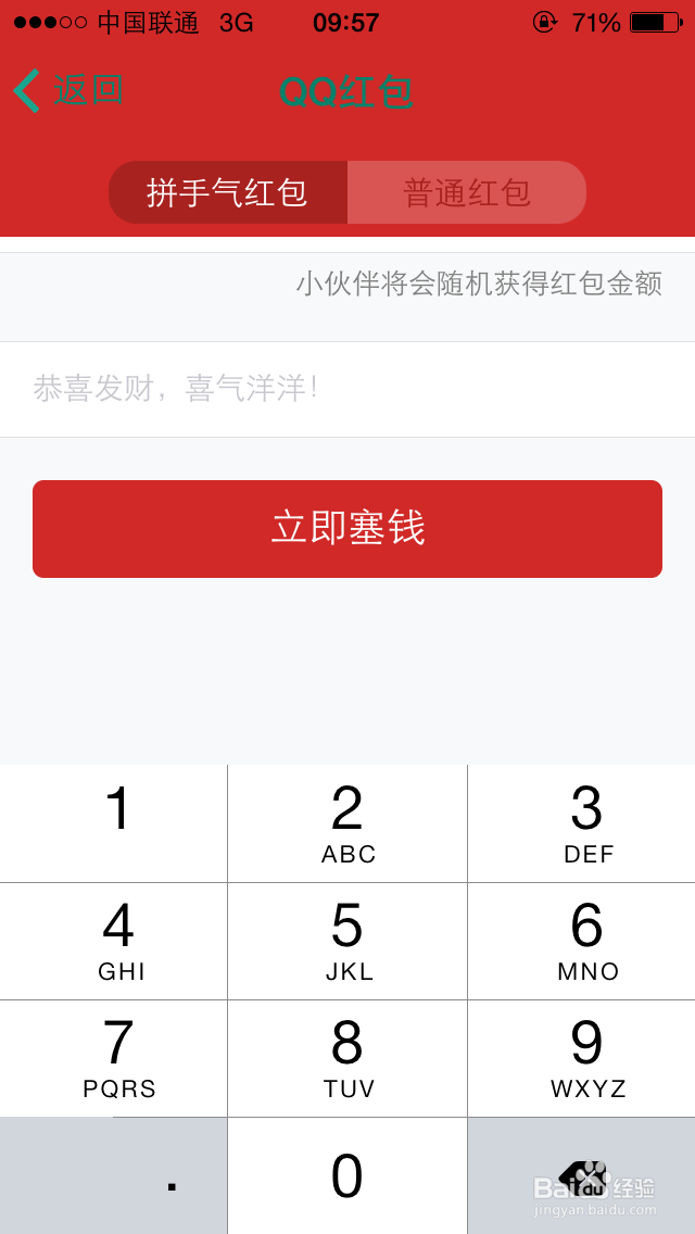 5、然后根据提示填好要发的人数,和你要发的红包钱数 点击立即塞钱~