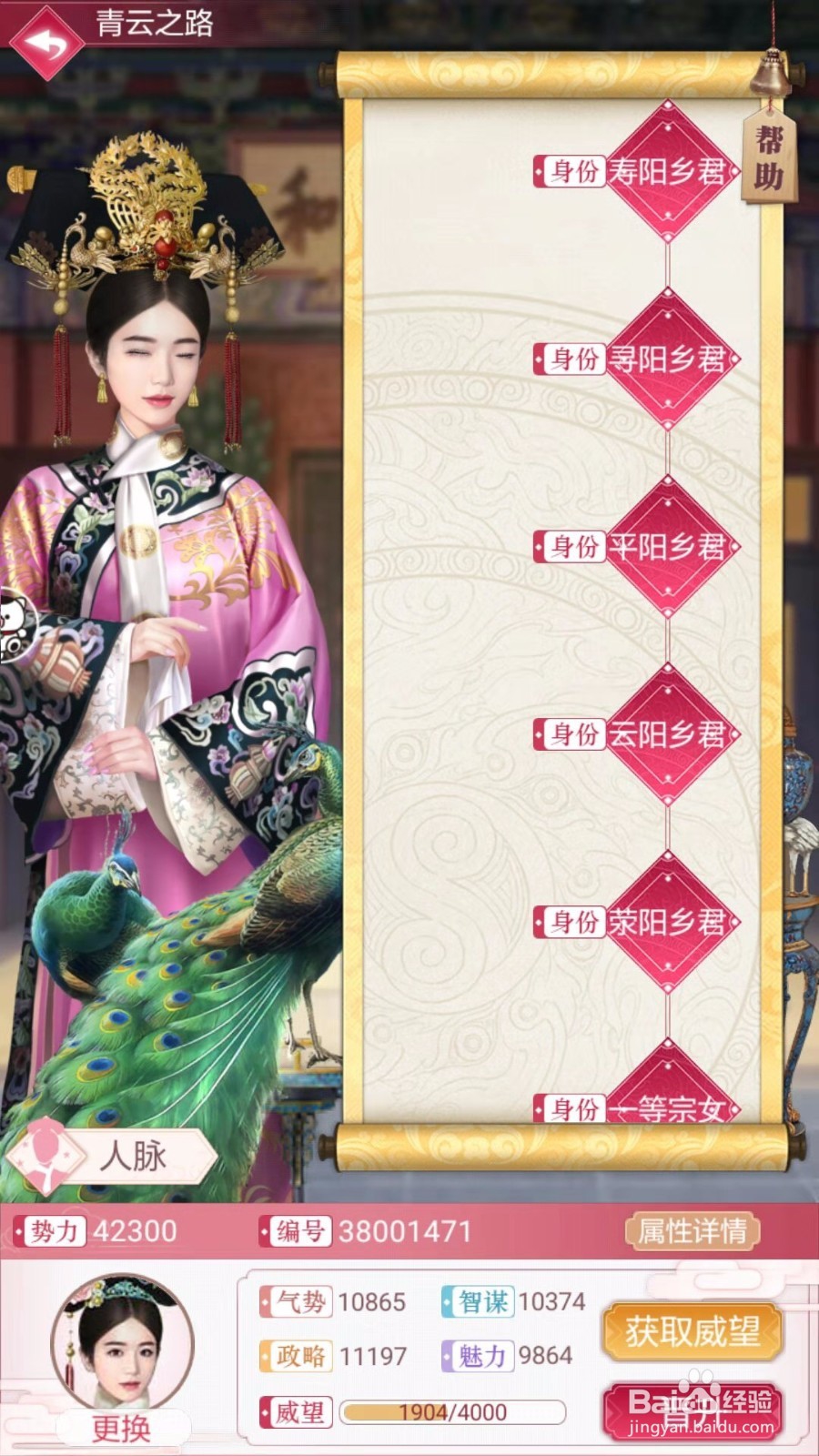 3、第三步:游戏初始等级是宫人,最高等级是安懿郡主。