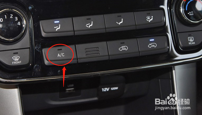 5、A/C的按钮是空调的制冷开关按钮,按下即可吹出冷风