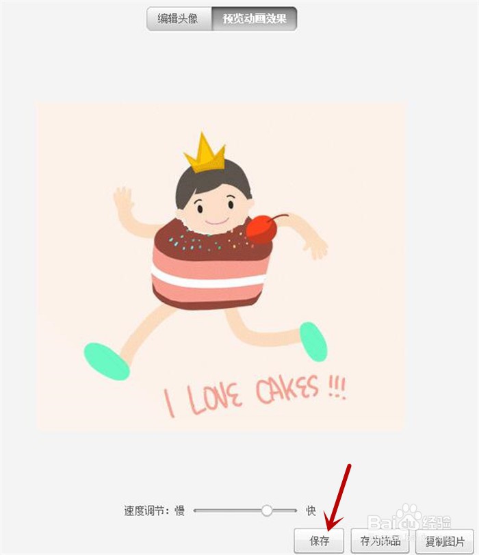 6、打开蛋糕的模板界面,鼠标点击底下的保存按钮,将动画图片保存在电脑中