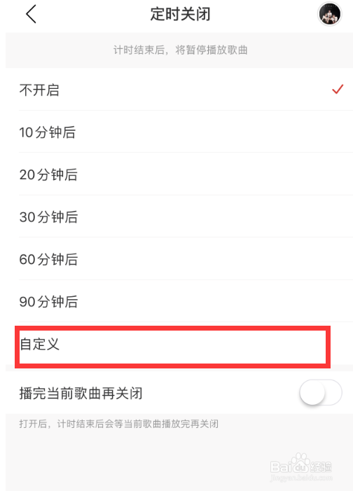 4、进入【定义关闭】设置页面,我们点击【自定义】