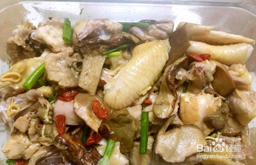 7、翻拌均匀,牛肝菌蒸鸡就做好了。
