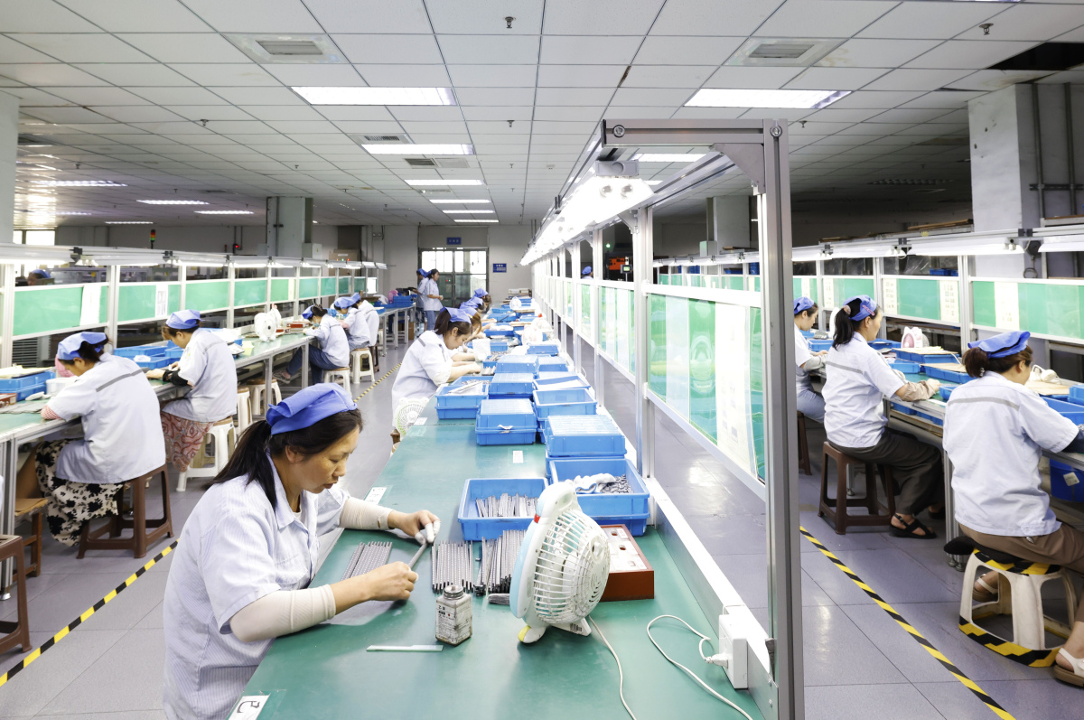 2月19日,工人在位于浙江金华市金义新区的浙江好易点科技股份有限公司