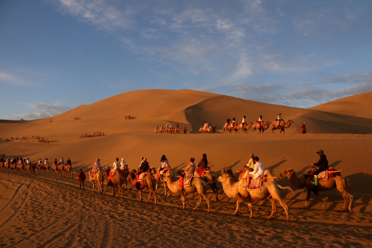 一眼看去,数千峰骆驼行走于沙漠之甘肃旅游景点照片丝绸之路甘肃敦煌