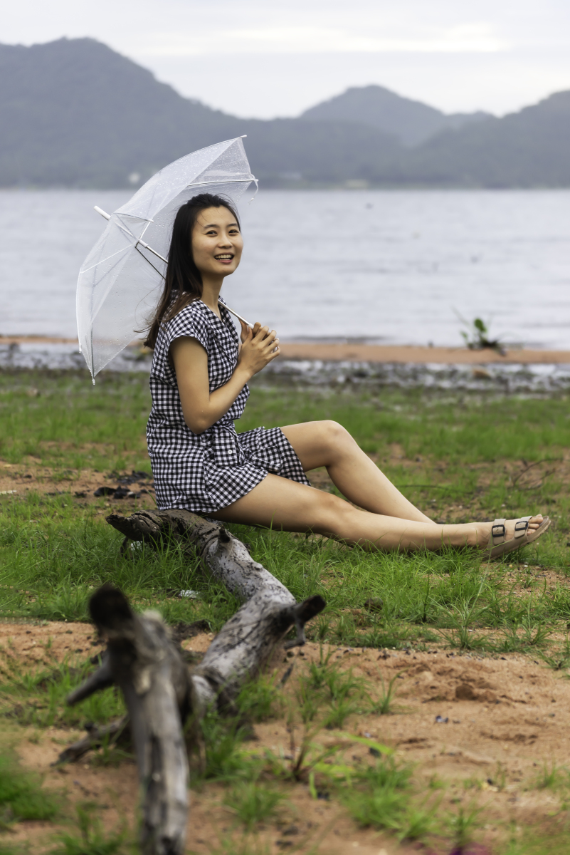 她静坐秋千,裙摆随微风轻摆,高跟鞋与自然相融.