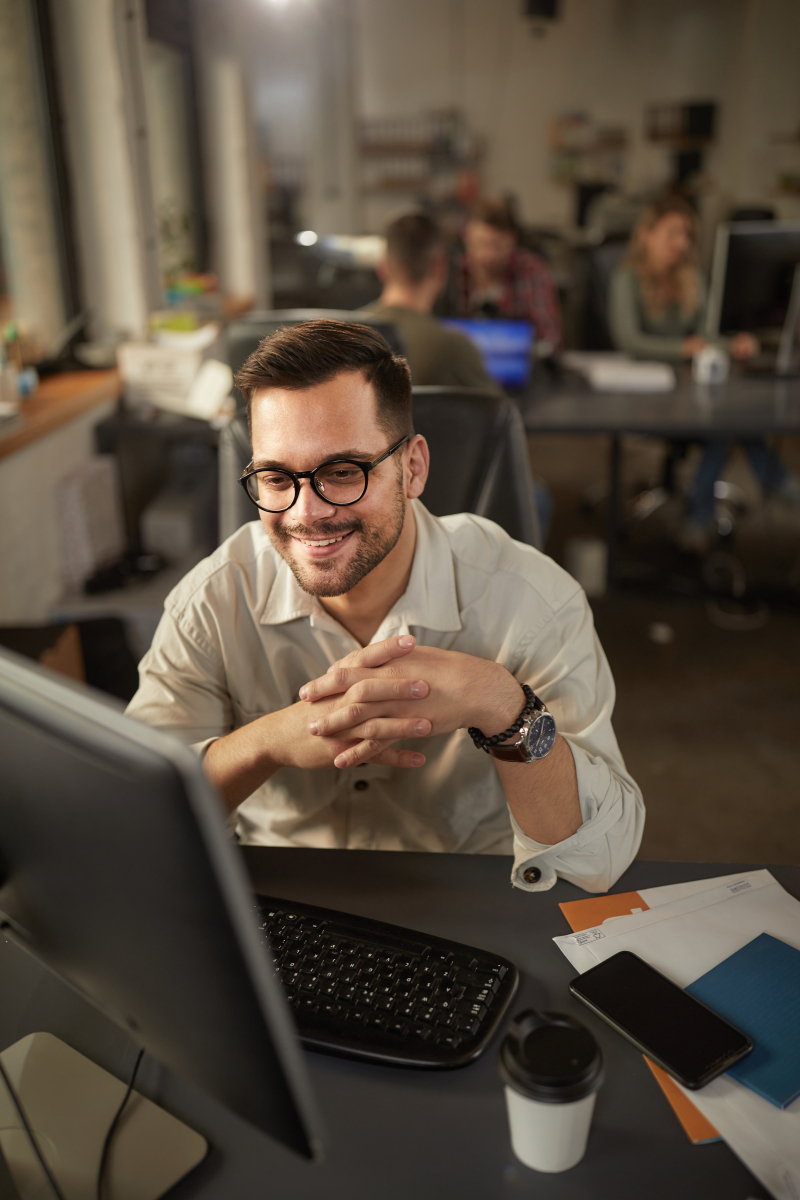 工作狂,在办公室里的人都努力工作,在他的办公桌