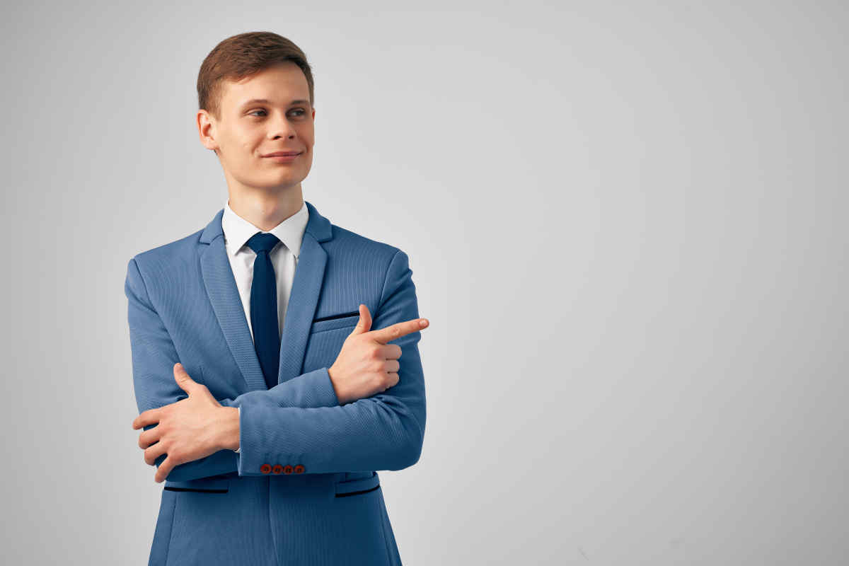 灰色背景下穿着西装竖起大拇指的男人图片素材-穿西装竖大拇指的男人