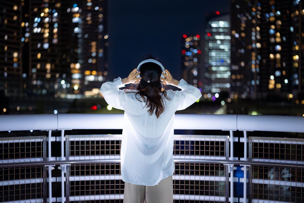 里美女背面照片夜晚女子背影深夜女人站立天桥上背景图夜晚 背影 女生