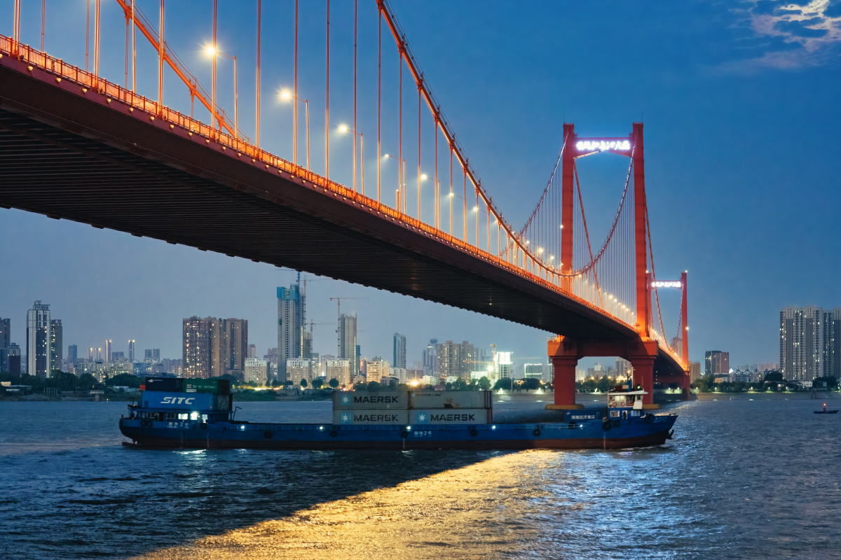 武汉鹦鹉洲长江大桥:夏日里的橘红色浪漫