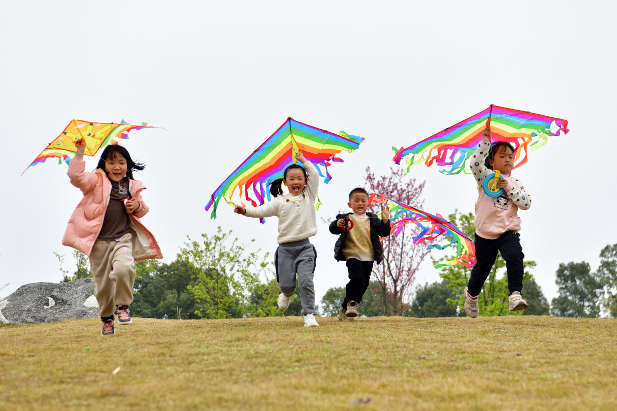 资料图:某地一公园内,小朋友正在放风筝.图 新华社
